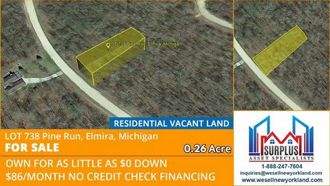 OWN THIS TODAY FOR JUST $1,800.00$999.00 FULL CASH PRICEor$1,399.00 With Seller FinancingSAVE $401.00 / 22.3% OFF MARKET VALUE All Deposits Are Fully Refundable Within 48 hours Check Out Our Buyer Protection GuaranteeCheck Out Our Affordable Payment OptionsSECURE WITH DEPOSIT TODAY This Wholesale Land For Sale in Elmira, MI Is All About Seclusion in a Highly Sought After Residential Recreational Community: Lot 738 Pine Run. Elmira, MI 49730 Land for Sale. This vacant land is a 0.26-acre vacant land lot that’s a short drive to the Exclusive Member-Only Golf Course within a private and tranquil location with easy access to Mancelona 16 miles away, 11 miles northwest of Gaylord, in the heart of northern Michigan with amenities like Lowes, Home Depot, Walmart, and the Canadian border is about 105 miles away. A Quality Addition to Your Portfolio: As a Lot 738 Pine Run Elmira, MI property owner you get an enormous amount of perks and benefits of being apart of the Lakes of the North Association which includes access to the Lakes of the North Golf Course an 18-hole course is a par 72 that spans 7,000 yards. As a Lot 738 Pine Run Elmira, Mi property owner you also get Private Member Amenity access to Harold Lake and Pencil Lake with Beach houses with Canoe, Rowboat Use, and more. Lakes of the North Clubhouse with an indoor pool, tennis courts, lounge area, and more. Settings Restaurant that’s open year-round casual setting, daily specials, and Free WiFi access. Lake Arrowhead Campground with 160 campsites, fire pits, 2 bathhouses, storage facilities, and more. Plus, Winter Sports Area with a skating rink, snowmobile trails, skiing trails, and more.Lakes of the North Airport with a 4,350′ asphalt runway that’s Open Year AroundHorse stables with seasonal guided horse rides, great for family Create A Striking New Family Home: Lot 738 Pine Run. Elmira, MI is an ideal investment with tons of potential in this area for those who love to stay away from the hostility of the city. Nestled close to lakes and year-round recreational attractions, you’ll have plenty of things to enjoy here. Secure Your Elmira, Michigan Address Today: Lot 738 Pine Run Elmira, MI is uniquely located near single-family homes in a peaceful and serene neighborhood just waiting for your custom-built home of immense charm and casual elegance to complete this neighborhood. DRIVE-BY ANYTIME… Take A Tour, You Won’t Be Disappointed. Antrim County, MI Profile What’s Happening in Antrim County MI? Antrim County is one of 83 counties in the State of Michigan that is located in the Bellaire, MI. Area Information: Antrim County is located in the northwestern part of the lower peninsula, east of Lake Michigan and Grand 5 miles of waterways throughout the area. Traverse Bay, and bordered on the west by the Mackinaw State Forest also referred to as the Jordan River Valley. The county has a total area of 602 square miles of which 477 square miles of it is land and 125 square miles of it is water. The county contains 45 lakes, has 24 miles of Lake Michigan shoreline, and rivers covering 65 miles of waterways throughout the area. Antrim County has nearly 44,000 acres of state forest land, the Grass River Natural Area and Wilcox-Palmer-Shah Nature Preserve. Most notable of the lakes is Torch Lake, considered to be one of the most beautiful lakes in the world. Torch Lake is on a chain of lakes that runs from Bellaire to Elk Rapids. North of Bellaire is another chain of lakes that goes from there through Central Lake and Ellsworth, with the largest of these being Intermediate Lake. Mancelona, located in the southwest corner of the county, on US-131, is home to the annual White Pine Stampede, Bass Festival, and Deadman’s Hill Scenic Overlook. Antrim county also has over a dozen fine golf courses and is a major ski resort area, home to Shanty Creek Resort. The county is the 8th smallest in the state and holds its county seat in Bellaire. Major Cities and Towns: Antrim County consists of 4 towns Alba, Alden, Eastport, and Kewadin, 6 villages including Central Lake, Bellaire, Central Lake, Elk Rapids, Ellsworth, and Mancelona. Elmira, MI Neighborhoods Hawks Eye Resort, Hawks Eye, Hawks Spur, Valdenspiel, Valley View, Adams Beach, Maple Valley Estates, Maplewood Estates, North Schuss Village, Obervalden, and Old Mission Shores Elmira, MI Cost of Living The cost of living in Elmira, MI is -1.8% lower than the National Average. What’s Happening in Elmira, MI? Elmira Township is a civil township of Otsego County in the U.S. state of Michigan. Elmira, MI Comparable Land This is the cheapest lot you can find in this area is listed: Click Here To More Expensive Listing Property Details Address: Lot 738 Pine Run Elmira, MI 49730 LON Association Restrictive Covenants: Download PDF Frontage: 68.64 ft. (Estimated) GPS Coordinates: 44.947627, -84.889962 Status: Active Sale Price: $1,199 (Full Cash Price) $1,399 (Seller Financing Price) State: Michigan County: Antrim County Closest Community/City To The Property: Gaylord, MI APN (Assessor’s Parcel Number): 05-13-350-461-00 Lot Size: 0.26 Acre Property Type: Residential Vacant Land Zoning: Residential, Platted Terrain: Level Road Access: Paved Utilities: Electricity Water Supply: Well Required Sewer: Septic Required Annual Taxes:$41.47 (Estimated) HOA Dues: $428/Year (Dues are reduced to $166 USD per year for each additional lot after the first lot) Disclosure: The owner has not visited the property and is not aware of the overall condition and may require permits, surveys, or zoning changes. This is a free & clear parcel with no liens and taxes are paid to date. We cannot provide suggestions, or advice with regards to your purchase and buyers should do due diligence on property condition, permits (if applicable), surveys, or zoning before purchasing. This property has been discounted from being sold “AS IS” without any warranties or representations of any kind or character, express or impli