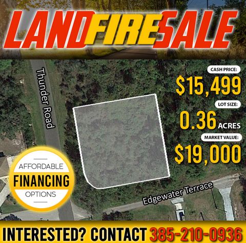 WHY BUY?: #1. Corner lot in a quiet neighborhood #2. Property sits in a private secluded setting but still close to town. #3. Multiple Purchase Options Available! Buy today for $15,499 cash OR finance $18,000 with $5,500 down and $295 a monthly payment for 5 years. COMMUNITY DETAILS: This property is a part of the Spring Lake community which is about 2 hours from Tampa, Orlando and West Palm Beach! The association offers a community center, playground, tennis courts, golf course, pickle-ball as well as a shuffleboard area. And don’t forget this property is also near Downtown Sebring, which is filled with amenities. Plus the lakes are beautiful and clean, making them perfect for canoeing, fishing and swimming. Don’t miss this steal, connect with me today! USAGE DETAILS: – Single Family Home PROPERTY DETAILS: – Lot Type – Land – Sale Price – $15,499 – State – Florida – County – Highlands – Assessor’s Parcel Number – C-15-35-30-060-0AA0-0170 – Property Usage – Single Family Home – Property Address – 5528 Thunder Road, Sebring, FL 33876 – Association Community & Contact – Spring Lake, springlakepropertyassociation.com – Size – 0.36 Acre(s) – Road Access – Yes, Paved – Electricity – At the Street – Water – Public / County connections – Septic – Private – Market Value – Similar sized lots in the area are listed for $19,000 ACCESS DETAILS: – Thunder Road is a paved road – Lot Address: 5528 Thunder Road, Sebring, FL 33876 – 5717 Edgewater Terrace is the address to the neighbors house, which is across the street POPULAR ATTRACTIONS: – Airboat Wildlife Adventures, 1 minute away – You’ll see so many gators and such beautiful scenery, definitely worth a visit! – Lake Istokpoga, 3 minutes away – The lake is huge and filled with lots of opportunities for boating, fishing, picnicking etc! – Highlands Hammock State Park, 29 minutes away – You’ll see so many gators and such beautiful scenery, definitely worth a visit! PURCHASE OPTIONS: We are currently offering this incredibly discounted lot at a cash price of $15,499. Financing available with $5,500 down and $295 a monthly payments for 5 years for a purchase price of $18,000 GOT QUESTIONS? WE HAVE ANSWERS!: – Call/Txt/Email Jeff McBride @ 385-210-0936, Jeff@Jeff-Sells-Land.com – We may have other properties at bargain prices available. All you have to do is ask! – Don’t hesitate! Connect with us today while this deal is still Available! DISCLAIMER: Buyer must verify & work with County to know what can & can’t be done with the land, obtain proper permits if needed & confirm the availability of any utilities needed/serviced on the lots. Seller makes no warranties or representations about the land, its condition, or what can be built on the parcel.