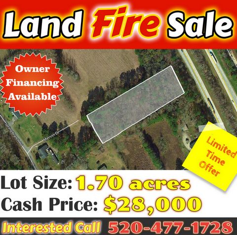 Spacious 1.7ac Property Deal, Tucked Away in Harleyville Unbelievable Land selling BELOW Market Value **************************** Contact Laura to learn more: 520-477-1728 – Laura@ahomesolutions.org **************************** Are you ready to start experiencing the advantages of Buying a Property BELOW value? Harleyville is the Perfect, Quiet, Little town to spend out your golden years! The people in the community are very friendly & it’s tucked away from the city which allows you to avoid all traffic & noise. Plus, Harleyville’s cost of living is 9.1% lower than the U.S. average despite recent job growth. The setting of this Quaint, Country town is very Peaceful & an Excellent place to explore the Beauty of nature. Actually, Francis Beidler Forest is around the corner. A fun fact about this forest, is that it’s the largest virgin Cypress-Tupelo swamp forest in the world! Come build your Forever home in this Ideal, Rural community! You’re a phone call away from making this lot yours! Connect with us Today. **************************** Easily access this land via the paved Mervin Dr. road. You can use these coordinates to find the property via Google maps: 33.2640836, -80.4827625, or use the nearby neighbors address of 364 Spring Branch Rd, to find the land. The AC Zoning offers a variety of usage options, such as Single Family Residents of up to 2 separate houses, that can be Stick built, Mobile or Modular homes & even Agricultural uses. Electricity is available at the street. Buyer will have to set up a private well & septic system. **************************** Buyer must verify & work with County to know what can & can’t be done with the land, obtain proper permits if needed & confirm the availability of any utilities needed/serviced on the lots. Seller makes no warranties or representations about the land, its condition, or what can be built on the parcel. **************************** You can purchase this property with cash for $28,000 or finance $34,000 with $5,000 down & $510 monthly payments **************************** If you enjoy nature walks, you’ll love the Edisto Memorial Gardens, which is only 37 minutes away in Orangeburg. The shady Boardwalks by the river, Rose Garden & Tall Trees provide the Perfect space for a Picnic or Special Event. And everything is Breathtaking in the garden, it’s one of the Best Well Kept Secrets in the area. There is also a Fabulous Spray Garden with a water playground for kids. Also a 57-minute drive to Charleston’s will lead you to the Historic Heyward-Washington mansion, where you can learn the Fascinating history about the significance of the house & its inhabitants. This is a Must See in the Charleston area! **************************** Purchasing property from us is quick & effortless. This property will be closed by a local title company & is guaranteed to be free of all liens and encumbrances. Buyer will receive title insurance & warranty deed. Message us here/call us today to get started. **************************** Buy this lot today for just $28,000 cash or finance $34,000 with $5,000 down **************************** Property Details: Lot Type – Land Sale Price – $28,000 State – South Carolina County – Dorchester Assessor’s Parcel Number – 0150000053000 Property Usage – AC Zoning: 2 Single Family Homes, including Mobile & Modular Homes with foundation & Agricultural Property Address – 0 Mervin Dr., Lot #: 0, Harleyville, South Carolina, 29448 Size – 1.70 Acre(s) Road Access – Yes, Unpaved Electricity – At the Street Well & Septic – Private Market Value – A 1ac lot sold for $31,950 **************************** To buy this lot at this discounted price call/txt Laura @ 520-477-1728. Don’t miss out on this great deal call/text us now! Note: We also may have other property at bargain prices just like this one available – ask us when you call!