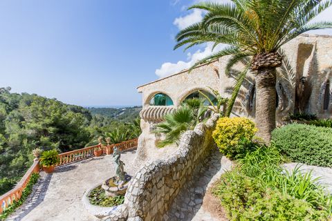 This is a unique property for its Gaudi-style design with lots of details inside and outside the house. It also has a large garden with beautiful paths, fountains, ponds and vegetation. It is located at the end of the town of Genova (next to the natural park Na Burguesa) 8 Km. from the center of Palma, 5 minutes walk from the popular restaurants in the area. It is a town that is ideal for those people who seek tranquility but close to Palma and the beaches of the island. The property has south facing sea views. The entrance is located in the first floor where we first access a nice hall. In front of the hall there is a spacious dining room and the lounge. Next to the living room is a large kitchen. On this floor there are 2 bedrooms and 1 bathroom. In the ground floor is the master suite with sitting room, large bathroom with a spectacular stone shower and a large dressing room beneath the bedroom. Furthermore the house has a spacious studio or guest apartment with a large living room, kitchen, bedroom and bathroom. MallorcaSite, your real estate agency in Mallorca, recommends this property for being near Palma, for the views, for the orientation, for being in a quiet area, for the unique design, for the garden, for its privacy.