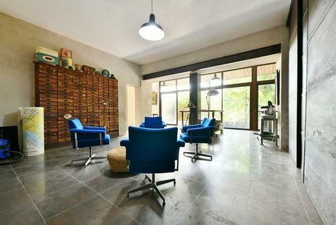 The garden level offers a living room/workshop of 55 m2 with plenty of storage, office and the last suite, the 4th of 34 m2 with bathroom.