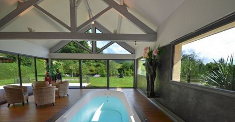 In a wing of the property overlooking the park an indoor swimming spa with its winter garden water heated to 38 degrees C with swim against current and jets to relax..