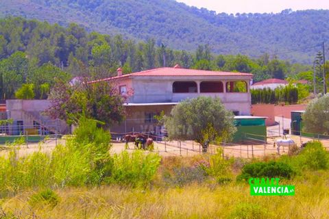 Villa with horse boxes in the La Rodana Natural Park in Vilamarxant, less than 30 minutes from the city of Valencia. This riding has 3 tracks of different shapes and more than 20 boxes or blocks of horses. The villa has more than 500m2 built, with a cloakroom of more than 200 square meters. The house contains 4 double bedrooms, 2 bathrooms, a large kitchen and a dining room of 50 square meters. The plot of land of more than 13 000 square meters is located in an incomparable environment, surrounded by pure nature. A unique opportunity to live and have your own horse riding.