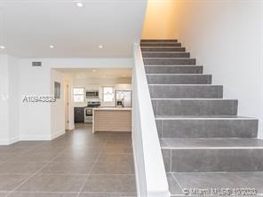 This modern and stylish 880 sqft, 1 bedroom, 1 full bath, two-story condo. Situated near the highly desirable South Beach lifestyle of fine dining, night clubs, and shopping, this turnkey home is ready for you. Quaintly tucked away off of Lincoln Road in a 14 unit gated community, and remodeled throughout, this exceptional condo features sleek large format tile flooring, and a spacious kitchen presenting a large island with a stunning white waterfall countertop, two toned cabinetry, and stainless steel appliances. The massive owners retreat is highlighted with built-in cabinetry, plenty of storage, and an upstairs in-home laundry just off the bedroom. Offering gorgeous tile, the upstairs spa-like bath, features a gorgeous deep bowl sink and a shower offering a rain shower head.