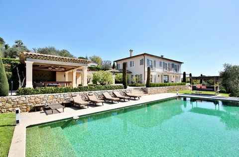 In the heart of the prestigious area of Castellaras, in a small gated domain of 3 villas, 5 minutes from the village of Mougins and 15 minutes from Cannes, quiet, facing south, splendid contemporary bastide overlooking its Mediterranean park of 6100 m2 beautifully planted mainly with olive trees and enjoying a preserved view of the surrounding nature. Beautiful heated infinity pool.