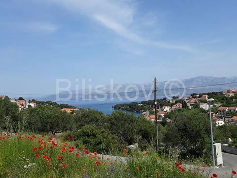 Building land in Splitska – near the county road, three plots of land connected, buildable approx. 600 m2, which area is for sale. The land has a sea view, close to water, electricity and telephone. The plot has two access roads.