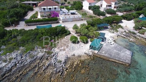 Korcula, house with a living area of 291m2 on a plot of 905m2 in the first row to the sea with a swimming pool, beach and boat mooring, and parking for all units. On the ground floor there is a comfortable three bedroom apartment of 109m2, and a garage with an apartment that has a separate entrance of 56m2. On the 1st floor there are 2 apartments, each two bedrooms of 50m2 with access to a shared terrace. The ground floor has a terrace of 120m2 and a swimming pool of 30m2. The attic is unfurnished, and it is possible to convert it into additional living space. The house was built in 1982 and renovated in 2017 and each room is air conditioned.The garden is cultivated, and allows undisturbed enjoyment for all units. The beach in front of the house is arranged and maintained by the owner, and has its own boat mooring. It is located in a protected bay overlooking Peljesac and two islets. Two minutes walk from the house there is a sandy beach and two restaurants are a few minutes walk away.It is located in a very quiet bay, ideal for a family vacation, and only 10km from the town of Korcula with all amenities.