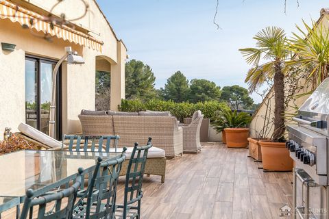 Facing south and benefiting from a panoramic sea view, in the heart of the Val de Mougins and its shops, in a building with park, swimming pool and garage, large penthouse composed of two apartments: a 161 m2 on one level with its terrace of 100 m2.