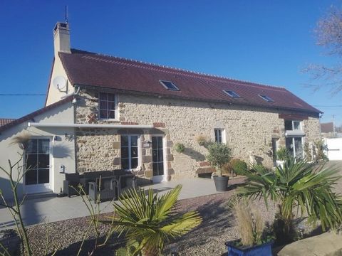 RARE for a main or secondary residence and/or to invest, located 1h30 from Montparnasse and the sea, come and discover this magnificent stone farmhouse, tastefully renovated combining the charm of the old (stone walls, exposed beams, fireplaces …) and modern comfort (insulation, heating, home automation …) on a well maintained garden of 2900 m² with trees, flowers with heated swimming pool, 2 terraces, chalet and outbuildings.