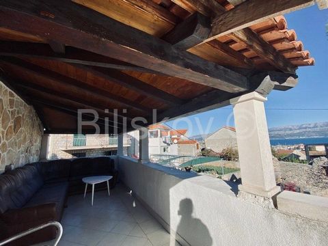 Brač, Supetar two-apartment house in the center, gross construction building area 212 m2, floor plan 124 m2, on a plot with a total area of 126 m2.