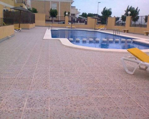 Nicely furnished ground floor apartment in los Narejos, very close to the beach and amenities and with communal pool. Large front terrace, 2 bedrooms, 1 bathroom, fully fitted kitchen, back patio, air conditioning, security door and grills, blinds.