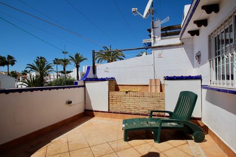 Conjunto Verdemar I ist eine etablierte private Wohnanlage direkt am renommierten Golfplatz von Villamartin gelegen. Die Anlage besteht aus Reihenhäusern und Ober- bzw Erdgeschosswohnungen in typisch mediterranischen Baustil umgeben von gemeinschaftlichen Grünzonen, Gärten und Schwimmbädern. Das Objekt ist ein erst kürzlich voll renoviertes Reihenhaus über zwei Ebenen mit privatem Garden vor und hinter dem Haus und einer großzügigen Sonnenterrasse. Es bietet auf der unteren Etage einen extra-großen Wohnraum mit Kamin und integriertem Wintergarten, einer separaten, voll ausgestatteten Küche, 2 große Schlafzimmer und ein sehr schönes Badezimmer mit Dusche. Über die elegante Innentreppe gelangt man auf die obere Etage wo sich neben einem weiteren Schlafzimmer und einem Badezimmer mit Dusche und Wanne die nach Süden ausgerichtete Sonnenterrasse befindet. Beide Etagen haben separate Wasserkreisläufe, so dass auch bei voller Auslastung des Hauses zu keinen Engpässen beim Duschen kommen wird. Auch die Terasse vor dem Haus genießt Dank seiner idealen Ausrichtung die Sonne den ganzen Tag über und ist ein idealer Platz um sich zu verwöhnen. Alle Zimmer sind mit Deckenventilatoren ausgestattet und sorgen somit für eine natürliche Frische im Haus. Neben vielen weiteren Extras sei zu erwähnen, dass auch in allen Schlafzimmern SAT-TV zu empfangen ist. Das Haus wird teilmöbliert verkauft und ist ab September 2021 übergabebereit.
