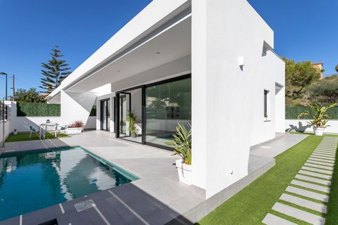 These modern and spacious villas are located in Villas de RIO VERDE in Pinar de Campoverde. Fully equipped kitchen with island and modern style furniture. Home appliances made by leading brands, including fridge, oven, ceramic glass hob, cooker hood and washing machine. Interior flooring made of top quality stoneware tiles. The exterior is paved with non-slip tiled floors. TV and telephone points in all rooms. Electric shutters. A/C pre-installation. Interior and exterior light fixtures fitted with LED bulbs. Private pool. Private secure parking. Private rooftop Solarium overlooking the natural area and landscapes.