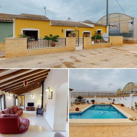 This delightful 3 bedroom, 2 bathroom country property is located in El Mirador which is between San Javier and Pilar de la Horadada and just a seven minute drive to the fantastic beaches of the Mar Menor. Deceptively spacious we have commisioned a walkthrough tour of the property which shows its size, character and why you should view, it is located here https://my.matterport.com/show/?m=x3qhEuvJJSU and there is a short walkthrough video here https://vimeo.com/459374268/2a862f002b. Situated in a secluded location this property is comprised of a front terrace opening into a reception room, a lounge with a log burner, master bedroom with en-suite bathroom, plus two further double bedrooms, there is a large fully fitted kitchen, a rear facing lounge/diner for entertaining, with a family bathroom and a utility room. A lot of the rooms have character beamed ceilings. From the rear lounge/diner there are patio doors that lead out to a large sun terrace with an archway leading out to the extensive pool terrace, summer kitchen and workshop. The large, private outside space and pool area are a highlight of the lovely home and get a lot of usage. In addition, this property is fitted with air conditioning and has a large plot of land opposite which is currently used as an orchard. MUST BE VIEWED INTERNALLY.