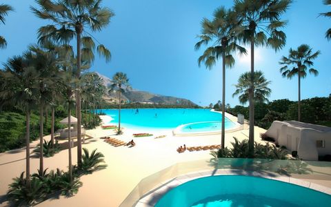 This is the residential development of your dreams, stretching through over 40,000 m2 with exotic gardens. A development of buildings with a catching design of white lines and gentle outlines for its south-facing dwellings. The crystal waters of the lagoon are always clear, and the most beautiful landscape surrounds it. A paradise for numerous water sports, such as paddle surfing, canoeing, sailing, kite surfing and windsurfing, etc… The first Crystal Lagoons to be built in Europe, for the exclusive use of this residential development: a housing complex in contemporary Mediterranean style in Casares, a privileged zone on the Costa del Sol.The first phase of the development offers 100 exclusive 2 and 3 bedroom apartments and lofts with spectacular terraces.