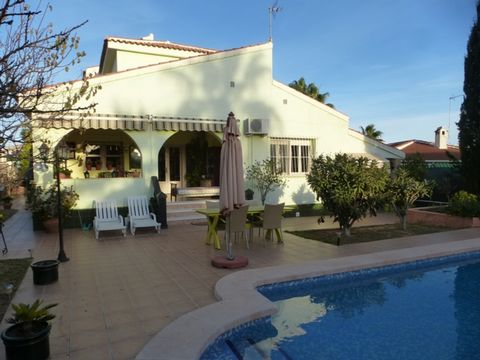 This Quality, Personally Designed Detached Villa in Ciudad Quesada is located centrally in this bustling and highly popular town, within a 5 to 10 minutes walk of a wide variety of bars and restaurants, shops, supermarkets, tobacconist, pharmacy, banks, medical centre, optician, travel agents, fitness gym, hairdressers, bowling, mini golf and more… Whilst the nearest beaches are situated at Guardamar del Segura in just a 12 minute drive. This lovely, well maintained property comprises on the extremely spacious ground floor of a beautiful curved entrance; opening in to the large lounge with feature wooden beams; open plan fully fitted kitchen with a huge dining table and a feature double sided fireplace, heating the whole living area; a wide hallway currently offering a desk space; with two more than double sized bedrooms off; and a family bathroom. From the kitchen there are double doors out to the rear, covered terrace, perfect to dine outdoors whilst overlooking the beautiful garden and private swimming pool. External stairs lead to the totally independent first floor; where there is a separate apartment or guest quarters, comprising of an open plan fully fitted kitchen with dining space, settee and access out to the surrounding terrace; a wide hallway currently with bunk bed; leading through to the magnificent sized double bedroom, with walk in wardrobe and double doors out to a private terrace space. Both 1st floor terraces with panoramic views across the area and salt lakes beyond. Outside is a kitchen, shower room and toilet, plenty of outdoors dining and sunbathing areas, different fruit trees, garden shed and a long driveway, being the only connection to the road, making this property quite private! Extras include A/C in the living room, kitchen and master, grilles across the ground floor, water softener and more…