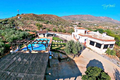 Beautifully presented three bedroom ‘Cortijo’ with two hundred and thirty five square metres of build and standing in a total of 9,800 m2 of olive groves. Situated on a stunning corner plot with fabulous views the majority of the land and the property is fully enclosed with a good fence and a gated driveway. Access to the property is via a good tarmac road just a kilometre from the main road linking the city of Motril to Velez de Benaudalla. There is a large pool deck with private swimming pool, outdoor kitchen, workshop and separate kennel. There is also a large roof terrace with amazing three hundred and sixty degree views. Entering the ample driveway the property sits to the right. On entering the home we are greeted by a very large lounge with four double windows flooding light into the room and affording lovely views out over the hills. The lounge has a fully enclosed wood burning fire and a stable door to the outside patio and pool area. The lounge has an open archway into the country kitchen which is well equipped and has artisan made units both on the wall and under the worktops and wooden american style bar which opens up to the very large dining room which has an open fireplace. Off the dining room there are two double bedrooms and a lovely family bathroom with walk in shower. The third double bedroom for guests is access via a separate staircase from the outside. This lovely bright room also has a stable door which leads out onto the huge ‘L’ shaped roof terrace which has incredible views. Outside there is a large pool terrace with small lawned areas which are bordered by flower beds. This area is fully fenced keeping it safe for small children and pets. There is an outdoor kitchen at one end of the pool terrace with worktops and sink unit plus a stone BBQ built in. On one side of this kitchen is a dining area with pergola above and on the other side is another small outdoor cooking area with built in pizza and bread oven. At the other end of the pool terrace is a covered sun bathing area which also has a pergola for shade when required. Below the pool terrace and closer to the main gated entrance are two separate driveways with one leading to a covered parking area for two vehicles. At the side of this parking area is a small workshop which houses the pool pump and filtration system which is purified by salt. Next door to this room is a washroom with WC. The second little driveway leads to a larger workshop with light and power. This oblong building has a dedicated kennel built to one end. The majority of the land is fenced around the house and gardens and holds many an olive grove and allotment with fruit trees. There is a triangular plot of land above the property which is not fenced and left to nature. This plot has a water tank at its peak housing ten thousand litres of irrigation water for the land which is provided by the community. Below the property and just adjacent to the main gate is another olive grove which also belongs to this property which is also not fenced. This is a wonderful property offers very comfortable accommodation whilst offering the country life via the olive groves, fruit trees of oranges, lemons, figs and pomegranates and the allotment to grow your very own vegetables. This property must be seen to be appreciated.