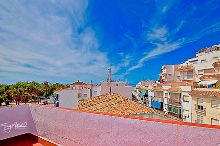 4 bedroom apartment with balconies and large roof terrace close to the beach at Salobreña. The upper of just two apartments this spacious property has 4 bedrooms (master with balcony), a large living/dining room with large balcony, fitted kitchen with separate utility room and family bathroom. The two apartments also share a huge roof terrace with views to both the ocean and the mountains. This well presented apartment is bright and extremely well located on the edge of the town centre, bars and cafes and just 10 minutes walk from Paseo Maritimo and the beach. 1 of just 2 apartments this great property offers spacious accommodation in the centre of this ever popular resort. With local council charges of undr 200€ per year and no community charges. Bright with good views from the balconies and even better 360 degree views from the large roof terrace this apartment is a great key ready buy at this very affordable price.