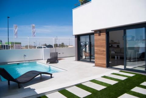 We are delighted to offer these brand new, modern, contemporary villas of exceptional build quality, very close to the popular seaside town of Los Alcazares. These modern, detached, 3 bedroom, 2 bathroom, key ready villas are located in the Spanish village of Roda, within walking distance you have bars/restaurants and a short drive or cycle is the large town of Los Alcazares which has banks, restaurants, shops, various bars, supermarket, petrol station, hair dressers, medical centres and leisure centre facilities. These properties are located near the motorway and less than 5 minutes drive to the beaches of the Mar Menor, 1 minutes drive to Roda Golf and Country Club and close to many other course , just 30 minutes from Murcia, Corvera airport and 45 minutes to Alicante airport. The villas include off road parking, rooftop solarium 61 m2, private swimming pool, and pre installation for air conditioning. Please contact us for availability and to arrange via . Ask us for our clients testimonials and comments on our exceptional service.