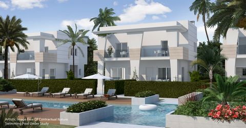 These East or West Facing, Three Bedroom, Brand New Semi Detached Villas in Doña Pepa are being built to the usual impeccable quality and individuality this constructor is renowned for, around a beautiful designed communal pool and garden area. A busy commercial area with main chain supermarket, furniture store, cafe bars, pharmacy and more is only 5 minutes on foot. Popular Quesada, Benijofar and Rojales, with the lovely La Marquesa golf course are 5 minutes by car and Guardamar where you have the nearest beach is just 10 minutes by car. These family homes on two floors are selling so fast with only the last few remaining. All come with pre-installed air conditioning, the use of a gymnasium and comprise: spacious living area with large sliding doors leading out to the landscaped garden and stairs up to the first floor; open plan lovely quality fitted kitchen with breakfast bar and utility off; double bedroom; modern shower room with a further two on the first floor (one en suite) and two more double bedrooms, master with terrace off; internal access leads to the 50m2 solarium the garden is landscaped with off road parking