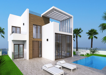 These brand new 3 bedroom, 3 bathroom detached villas with private pools are on the exclusive Laguna Beach development overlooking the Torrevieja salt lakes and are just a few minutes drive from the beach. The ground floor comprises of a light and airy lounge with floor to roof windows and patio doors leading out into the private garden with swimming pool, an open plan kitchen/diner, a double bedroom with en-suite, a guest bathroom and staircase leading down to a 74 m² under build. On the first floor there is a double bedroom with a private balcony, another double bedroom with small balcony, an 18 m² sun terrace and a guest bathroom. There is also access to a large 46 m² rooftop solarium to enjoy the all day sun. There is also a choice of plots available. This exclusive development is situated overlooking the Torrevieja salt lakes and is a few minutes from the beach and only a short walk to bars, shops and restaurants. The Los Balcones area is well established and close to a great range of amenities including bars, shops and restaurants and also the bustling Spanish town of Torrevieja is only a few minutes drive away.