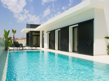 New luxury detached villa all on one-level in La Marina offering you 3 bedrooms with fitted wardrobes, 3 bathrooms, living/dining room (32m²), separate kitchen, utility room. The Master bedroom is 22m² and will have its own en-suite and dressing room! Off-road parking, private swimming pool (8×4), 90m² tiled terrace. Located near the airport and cities such as Alicante, Elche and Torrevieja.