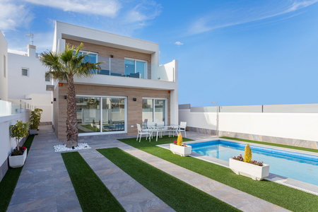 Here we have a brand new development of five detached villas with private swimming pool, near the centre of San Pedro del Pinatar, Murcia (Costa Calida), and within walking distance to the sandy beaches of Mar Menor and the Mediterranean Sea. The property boasts three double bedrooms with fitted wardrobes (Master with a dressing room), two fully fitted bathrooms with floor heating, a spacious living/dining room, open plan kitchen with all appliances included, private terrace and garden with a swimming pool+jacuzzi and shower, off road parking, pre-installation for the air conditioning (hot/cold), and a private solarium Completion November 2018!