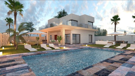 This magnificent bespoke two-level villa is 257sqm, and being build on on a 700sqm plot, situated in the sought after area of Campoamor, Alicante (Orihuela Costa) and only 400 meters away from the local beaches and Marina-Yacht club! The villa boasts 5 bedrooms with fitted wardrobes, 4 bathrooms, living/dining room with open plan kitchen, storage room, off road parking, large porch and terraces, garden with private swimming pool (8×4), security gateway, pre-installed alarm system, energy saving aerotermia system (hot water) saving up to 75% on consumption, electric blinds, private solarium (pre-installation jacuzzi)