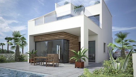 A small development of just six detached three bedroom villas situated on a private road overlooking the golf course at Lo Romero golf club. The villas are finished to a very high standard and include private 7m x 3m swimming pools in the price. The villas are a modern design with large windows and open-plan living space. Downstairs there is a living room with open-plan fitted modern kitchen, a WC and ground floor bedroom with en-suite bathroom. Upstairs there are two further bedrooms, both with en-suite bathrooms, and a 22m sun terrace. An optional 48m solarium can be added for 7,000€. Outside there is off-street parking and a terraced garden with private swimming pool. These are beautiful villas – contact us to arrange a viewing before they are gone! PLOT 1: 464m plot – 347.000€ PLOT 2: 492m plot – 359.000€ PLOT 3: 472m plot – 349.000€ PLOT 4: 443m plot – 345.000€ PLOT 5: 404m plot – 336.950€ PLOT 6: 368m plot – 329.000€ TO RESERVE – 3000€ to reserve, 50% in 1 month, 25% 5 months later and balance on completion. Build time 10-12 months from contract.