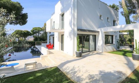 Located on the West side of Cap Ferrat, newly built modern style villa of 300 sq.m on 3 levels set in a beautiful garden of 1,200 sq.m with swimming pool,