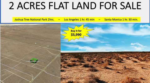 Flat lot in an easily accessible area in a growing community. Just outside California City and a short distance from Edward Air Force Base. Other projects in the area include Mojave Air & Spae port (future private space travel and wind farms) and the Boron Rio Tinto Mine – Lithium exploration. Mojave is central to many aviation, historical, and natural treasures and activities. 1 hr. and 30 minutes from Santa Monica and Los Angeles and only 30 minutes from Rosamond, you are close to medical services, shops, restaurants and parks. California City Airport is just 13 miles away, offering you convenient access to the world. Imagine owning over 2 acres to build your dream home surrounded by nature and spectacular views! PROPERTY LOCATION: The address is 12200 GLENDOWER AVE; MOJAVE CA. Recreational area Piute Ponds is just minutes away. This area is extensively used by photographers, bird watchers, hikers, waterfowl hunters, researchers, and nature enthusiasts. NEARBY ATTRACTIONS: California City Parks & Recreation – 10 min (8.1 miles) Central Park – 13 min (9.1 miles) Boron Sign – 19 min (17.6 miles) Barbara Bay Subterrane – 37 min (35.3 miles) Century Circle – 44 min (42.5 miles) Public Art “Facing the Sun” – 49 min (50.0 miles) Elmer’s Bottle Tree Ranch – 56 min (53.8 miles) Butte Valley Wildflower Sanctuary – 1 hr 4 min (61.4 miles) PROPERTY USE: Build your dream home. This property is zoned Residential which allows residential development. Agricultural use: Breeding and raising animals, growing of agricultural crops for domestic use, Community garden. Recreational use, bring your toys! PROPERTY VALUE: The market value of similar lots is around $14,000 and above based on recent listings in the area. You can buy this property for way below market value. Invest in your future! PURCHASE OPTIONS: The cash price of this property is $5,999. Financing available, just give us a call. Details about the property: Location 12200 GLENDOWER AVE, MOJAVE CA 92523 Legal Description: Tract 3530 , Block , Lot 6 Size 2.02 ACRES Parcel # 335-095-03-00-2 Zoning Residential Suburban and Agricultural uses Water: Well needed Sewer: Septic required HOA: No HOA fees Don’t wait! This property will go fast!! Call now (408) 462-6484 DISCLAIMER: The buyer is responsible for verifying all information with the County as to what can and can’t be done with the property. The buyer will need to work with the County to obtain the proper permits if needed. The buyer will also need to confirm the availability of any utilities needed or serviced on the property. Seller makes no warranties or representations about the land, its condition, or what can be built on the property.