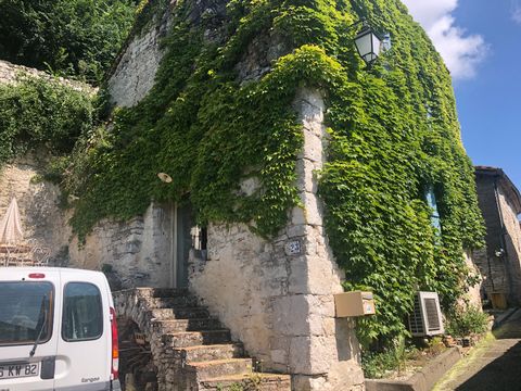 Une petite maison de village dans les hauteurs de Montaigu de Quercy, avec 2 chambres, un petit jardin et une terrasse sur le toit. Cette vieille maison en pierre est parfaite pour une maison secondaire qui a un espace de vie ouvert au rez-de-chaussee, 2 chambres et une salle de bain au premier etage, plus une serre laterale a ce niveau, et au dernier etage un espace ouvert avec un WC et un lavabo et des fenetres vitrees donnant acces a une terrasse sur le toit. Une propriete atypique, la maison a des murs en pierre apparente, beaux hauts plafonds dans les chambres, un melange de fenetres a double et simple vitrage. il y a une pompe a chaleur reversible et un poele a bois. Un bonus supplementaire, il y a 2 places de parking de chaque cote de la propriete. Elle est situee dans une rue calme avec un acces a sens unique. Rez-de-chaussee Entree dans le salon ouvert (32,86m2) menant a la cuisine equipee (7,34m2). il y a des portes coulissantes donnant acces a la terrasse laterale. 1er etage Grand palier (9,56m2) (hauteur 3.26m) 2 chambres (16,09m2 et 10,67m2) Salle de bain (6,97m2) avec baignoire d’angle, lavabo et WC. Acces a la terrasse laterale avec panneaux vitres offrant une serre verticale pour des plantations tout au long de l’annee. Grenier Espace ouvert (24,77m2) avec WC et lavabo. Fenetres vitrees et une porte donnant acces a la terrasse de toit orientee vers l’est (25,14m2). Access au jardin arriere (15m2) Cave Grande cave voûtee (35m2) avec un plancher Casteen, acces a une source. Abri de jardin Au niveau du sol, a cote du parking, il y a un petit abri et une terrasse couverte pour le stockage. ADSL disponible Tout a l’egout Taxe fonciere 607 euros par an Le village a tous les commerces y compris un centre medical, un supermarche, ecole primaire et un lac de loisirs A un peu plus d’une heure de l’aeroport de Toulouse, 1h20 de Bergerac et 45 min d’Agen (acces TGV)
