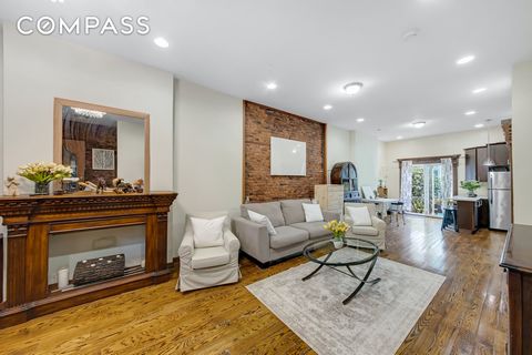 Beautifully renovated 2-family townhouse in Bed Stuy, Brooklyn with 2,135 square feet to expand! Built-in 1899, the brownstone is currently configured as an owner’s upper duplex over a high-income garden and finished basement rental. The upper duplex has a gorgeous completely open parlor floor for living, dining, and a kitchen with 11.5’ ceilings. On the upper floor, there is a large primary bedroom suite and two more spacious bedrooms, another full bath, and a washer/dryer. Ceiling heights 11’. Garden level duplex rental includes 2 bedrooms, 2 full baths, washer & dryer including a finished basement. The backyard is nicely landscaped and includes a section for outdoor movie screenings with friends and family, a studio and a tool shed. Great restaurants and shopping plus several parks close by. Easy commute to Manhattan on the J, Z, and C lines. Low taxes: $3,623