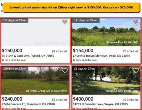 If you are looking for a great deal on land you found it. 20 Acres of land in McClain County OK for $69,777. Just picked this up and at this wholesale price, it won’t last long. If interested (405) 225-3685 Please call me for financing options. Property Type: Land State: OK County: Mcclain City: Byars or North of Byers APN: (Assessor’s Parcel Number): 0000-24-05N-02E-0-006-00 Property Address: See coordinates Zip: 74831 Coordinates: 34.893086, -97.044233 Size: 20 acres Short Legal: W SW NE ETAL – PHILIP GRISHAM, KATHY GRISHAM, & CYNTHIA PERKINS Zoning: There’s no zoning in the unincorporated areas Road Access: Dirt Road & Yes, there’s an easement or legal access to the property. Electricity: There’s a power pole available near the property. Annual Taxes: $103 Mobile Homes: Mobile Homes are allowed RV: RV’s are allowed Buildability: No regulations or restrictions Camping: Camping is allowed Water: Need to dig a well Sewer/Septic: Need to install septic Flood Zone: Not in the flood zone area.