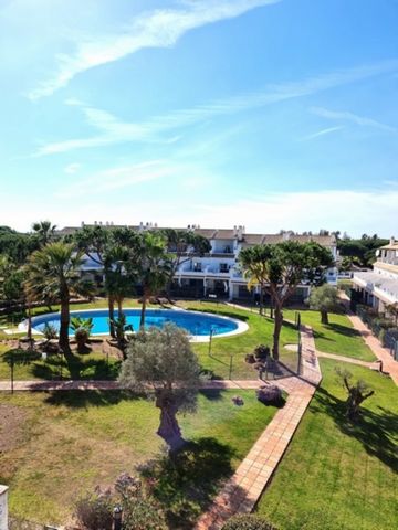 A beautiful three bedroomed townhouse at the Nuevo Portil golf and beach resort. The house is built on three levels with spacious terraces or patios at each level offering views of the swimming pool, gardens and golf course. On the ground floor the house has a large lounge-diner with an open fire place and patio doors leading to the large patio & sunbathing area. Including the entrance hall with storage cupboard the ground floor also has a fully fitted and equiped modern kitchen with utility area, there is also a separate WC. The master bedroom with en-suite bathroom and large sun terrace is located on the first floor together with a second bedroom and second bathroom. The top floor has a large open attic style room used as a third bedroom with doors leading to a third terrace area. All floors are white Spanish marble. There is ample storage space with built in wardrobes in all bedrooms and a private lock up storeroom situated in the communal underground garage with two allocated parking spaces.Within a short walk to the beach, restaurants, and cafes. Nuevo Portil is a very beautiful location on the costa del la Luz, Huelva. It offers the benefits of seaside and golf course living without the overdevelopment found in other locations. There are kilometers of beautiful beaches within walking distance, backed by pine forests and sand dunes.Faro and Seville international airports are just one hour by car.