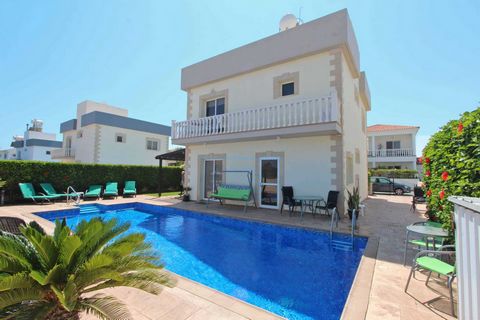 Downstairs is the living area at the front, dining area with kitchen, all open plan with a guest wc for convenience. All 3 double bedrooms are on the first floor, the master has en suite shower and wc. The large family bathroom has a separate shower and corner jacuzzi bath. A further staircase leads to the private roof terrace with fantastic views of the Ayia Napa coastline, a great spot for a relaxing cocktail after a busy day at one of the nearby beaches.