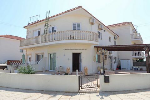 Occupying a large corner plot with off street parking and a large patio this spacious property makes a great home in the sun. The main entrance leads into the living area with staircase leading to the first floor. The separate kitchen has ample worktop and cupboard space and room for a table and chairs. There is also a guest wc at ground floor level. Upstairs are 3 double bedrooms and a family bathroom. The master bedroom has patio door access to the first floor balcony with views of the area, overlooking Paralimni lake.
