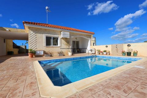 Set on a large, well maintained plot this lovely bungalow has a 4x6m swimming pool, covered parking and large private terrace both covered and shaded. The entrance from the swimming pool terrace leads into the open plan living, dining and kitchen area. a short corridor leads to the 3 double bedrooms (master with en suite) and large family bathroom.
