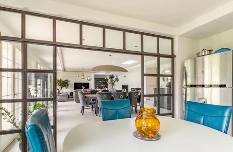In the city center of Chantilly, the property built in 1830 offers a little less than 500 m2 of living space between the mansion, the outbuilding and the swimming pool area under glass roof.