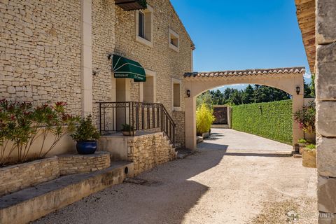 Between Luberon and Alpilles, superb contemporary Provencal Mas with large interior volumes including a reception room of nearly 200 m2, a living room of 220 m2 including 9 bedrooms with its shower or bathroom, 2 heated swimming pools (indoor and outdoor).
