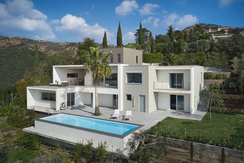 Surrounded by greenery and bathed in sunshine, this 260 m2 contemporary villa set on 1,750 m2 of terraced grounds offers full privacy and panoramic views of the magnificent Var coastline.