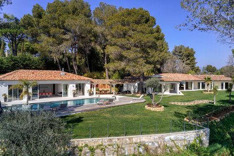 Surrounded by majestic pines, this property is a true haven of peace offering an exceptional panorama that extends from the old village of Mougins to the hills of the Esterel with a breathtaking sea view.