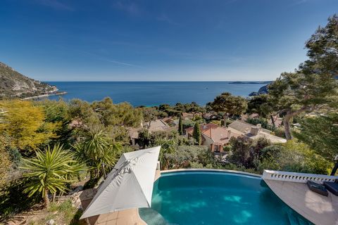 Eze bord de Mer beautiful villa of 170 m2 living providing a panoramic sea view on the Bay of Eze and Saint Jean Cap Ferrat, south facing, large terraces, infinity pool with jacuzzi.
