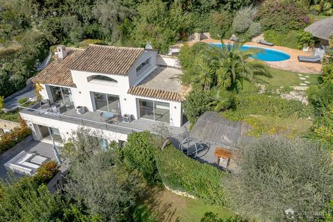 Enjoying an exceptional panorama on the bay of Cannes, the Suquet and the Esterel. 1400 m2 garden entirely landscaped, decorated with free form swimming pool and closed garage.
