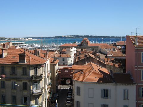 At 8 min walking distance from the Convention Palace and beaches of La Croisette, modern apartment on 2 floors (top floor) with the sea view at the Lerins island and the bay of Cannes.