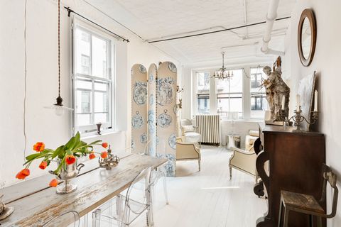 OG TriBeCa full-floor loft….on what is considered TriBeCa’s “Best Block” 41 N. Moore Street(The “N” historians claim stands for “Nathaniel”, to newbies in the hood, its “North Moore”) Bring your Architect or hire the current owner Architect who is willing to deliver the loft with a freshly built 2nd bedroom or keep it as it, a full floor totally Shabby Chic Old School Gem of a Loft! Original tin ceilings, partially wood partially cement floors, claw foot tub, fire escape(aka balcony) on the front. Facing south and north, exposed brick walls….The kitchen and Bath are ready for your reno or keep it as it is …complete with beadboard and exposed everything. Ridiculously low monthlies unabated taxes of $577.52 and common charges $1011.33