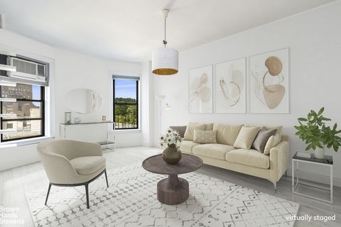 Beautifully renovated one-bedroom prewar condominium with soaring ceilings on Central Park West. The kitchen with custom cabinetry and stainless steel appliances has been opened up to the living room to create a fabulous entertaining space with bay windows offering views of Central Park. The bedroom is well proportioned and there is a newly renovated hall bath with a shower. The apartment features sunny open northern views in all rooms with oversized windows and 9’9″ foot ceilings. Additional features include a full-size LG washer/dryer, generous closet space, and original pre-war details. The Braender Condominium is conveniently located across from the entrance to Central Park leading to two of the most peaceful and picturesque areas, The Pool and The Loch. Whole Foods and Trader Joe’s are nearby, and the subway is just a block away. This full-service condominium offers a 24-hour doorman, live-in super, central laundry, bike room, and basement storage lockers. Pets are welcome. Please note that there is an ongoing monthly assessment of $62.52 and a capital contribution of $76.47.