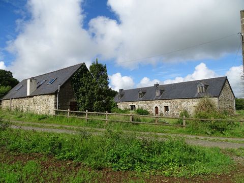 An opportunity to buy two detached stone longeres, one of the properties has been beautiful restored with all the main works completed. These houses can provide the opportunity for a large family home and a separate cottage for a rental income. The other house does require renovation works to be finished, the previous owners have started some of the renovations such as boarding the walls upstairs and partitioning the rooms. These properties are situated in a lovely peaceful location close to the village of Lohuec. The renovated longere consists of a large open plan living/dining room, a newly refitted kitchen, there is a wood burner in the lounge. On the first floor there are 2 double bedrooms one of these having an ensuite shower room with a WC, a single bedroom and a family bathroom. To the side of the property there is a workshop. The house to be renovated has lots of original features, there are two rooms downstairs measuring 60.2m2 and 64.7m2, in one of the rooms there is the original fireplace with a wood burner. Upstairs the previous owners have started boarding out the rooms, they have created 4 bedrooms and 2 bathrooms but this can easily be changed if required. Both properties have their own electricity metre and water tank, the properties are on fosse septic system. This would make a perfect place to keep horses or animals, the land including the houses is 12155m2. The properties are situated close to the village which has a shop bar/restaurant. The larger town of Callac is only 10 minutes’ drive away where you will find supermarkets, pharmacies, post office, banks, bars, restaurants, cinema and a train station. it is in reach of ferry ports of Roscoff and Saint Malo and airports at Dinard, Brest and Rennes. The nearby towns of Carhaix can be reached in 20 minutes and Guingamp. dont 4.49 % honoraires TTC a la charge de l’acquereur.