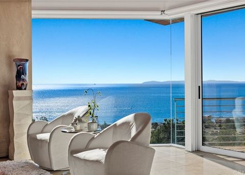 Welcome to a Mark Singer masterpiece. As you enter the front door, you are surrounded by breathtaking, unparalleled ocean, Catalina Island, and coastline views. Spanning approximately 4,400 SF, this exquisite 4 bedroom home is perfectly positioned in desirable Woods Cove with close proximity to the beach, shops, restaurants, and all that Laguna Beach has to offer. The main level provides a primary suite, with floor-to-ceiling windows that showcase the panoramic ocean and city lights. The ensuite primary bath, with heated floors and vaulted ceilings, provides a spa-like experience. A large island is centered in the chef’s kitchen on the main level which displays brand new quartzite countertops and backsplash which carries through to the large walk-in pantry. The home features luxury appliances, including, a Hestan stove, a Liebherr refrigerator, an additional two-drawer in-island refrigerator, as well as a Cove dishwasher. The allure of the outdoors continues through the home, with a functional floor plan and a beautiful water feature that welcomes you onto the outside entertaining deck with plenty of seating for family and friends.