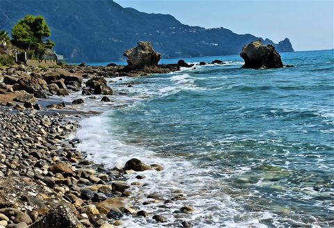inclined, with a private road that unites both plots and ends to the beach, with crystal clear water and pebbles, a true paradise on earth with the most wonderful sunsets. An ideal place to relax and enjoy the sun during the hot days of summertime, but also during winter you can enjoy lovely walks on the sunny days.